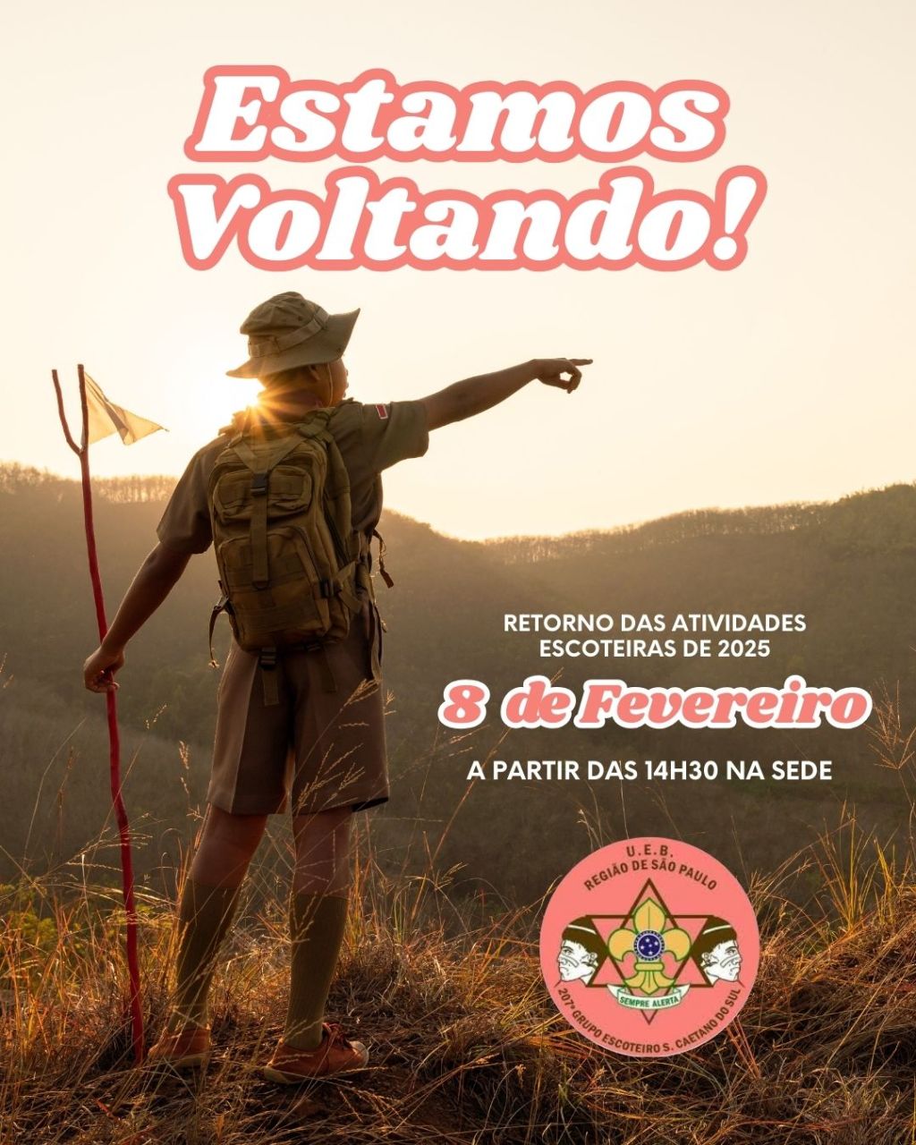 Depois de um merecido descanso, é hora de retomar nossas atividades escoteiras com muita energia e entusiasmo! O GESCS está de portas abertas a partir das 14h do dia 08/02, pronto para mais um ano de aprendizado, crescimento e conquistas.