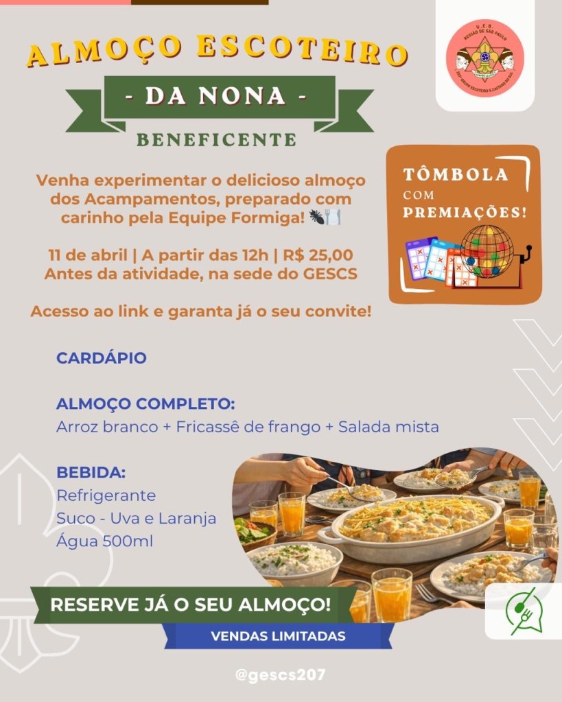 🍽️ Almoço Escoteiro – Da Nona (Beneficente)